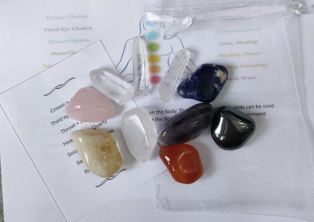 A complete crystal set to get you started with chakra balancing on yourself or others.
